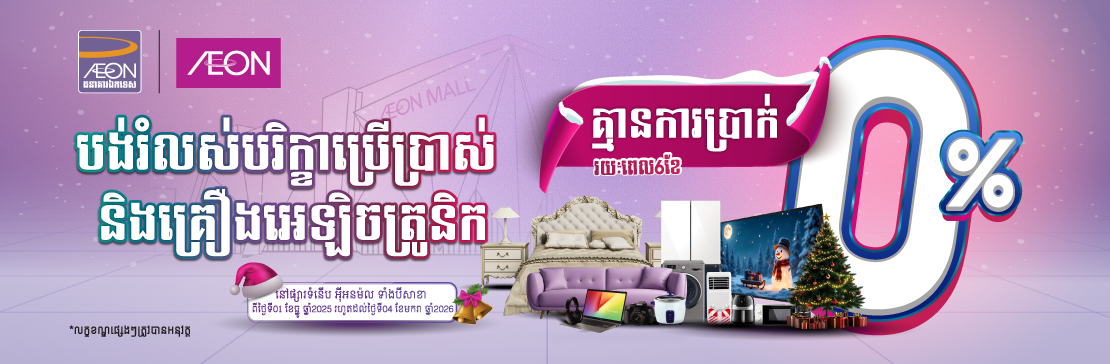 រីករាយសម្រាប់ការបង់រំលស់ជាមួយអត្រាការប្រាក់ 0% ជាមួយ អ៉ីអន ខេមបូឌា ក្នុងកម្មវិធីថ្ងៃបុណ្យណូអែល
