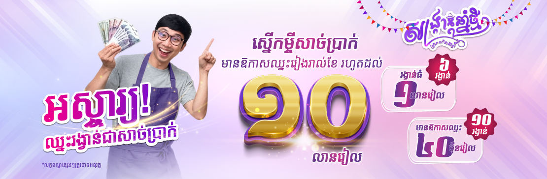 ប្រូម៉ូសិនពិសេស ស្នើសុំកម្ចីសាច់ប្រាក់នឹងឈ្នះលុយសរុបរហូតដល់ 1,000,000 រៀលជារៀងរាល់ខែ
