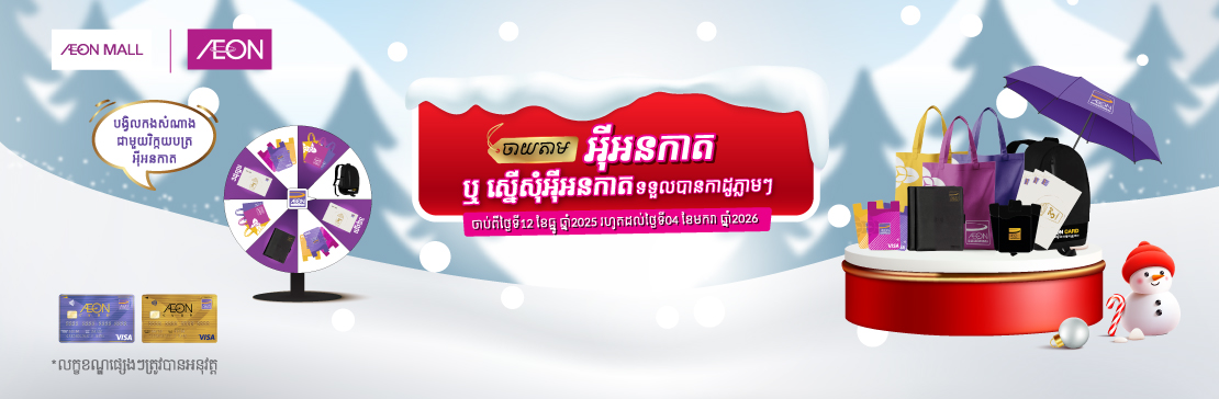 រីករាយបុណ្យ Christmas & ចូលឆ្នាំសកល 2026! ចាយដើម្បីបង្វិលកងយកកាដូភ្លាមៗនៅក្នុងផ្សារទំនើបអ៉ីអន