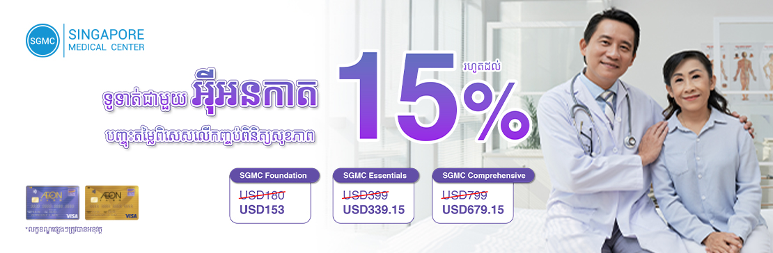 Special offering up tp15% discount on health checkup package at Singapore Medical Center when using AEON Card.