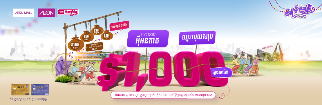 | Location Promotion | AEON Mall Phnom Penh, AEON Mall Sen Sok, AEON Mall Mean Chey, AEON Cambodia & AEON MaxValu. |